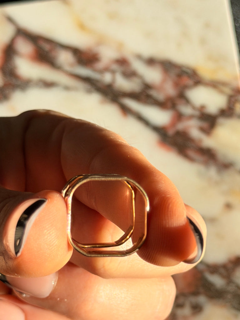 A different take on a stacking ring. This ring features a "square-ish" shape for a more bold look. It is actually so comfortable to wear!