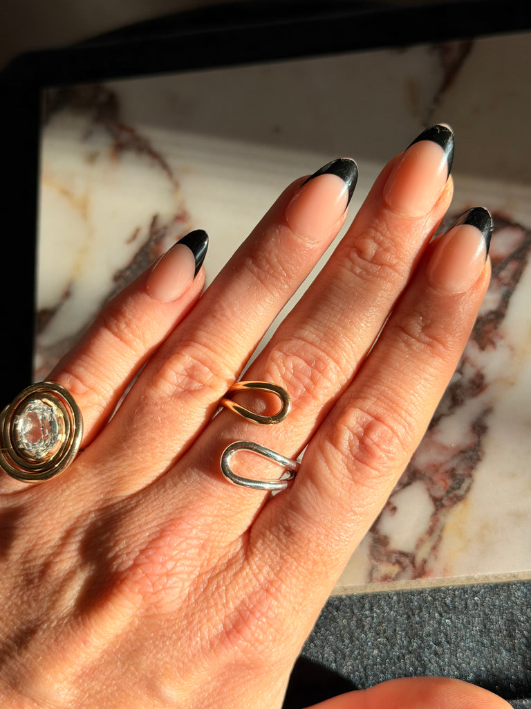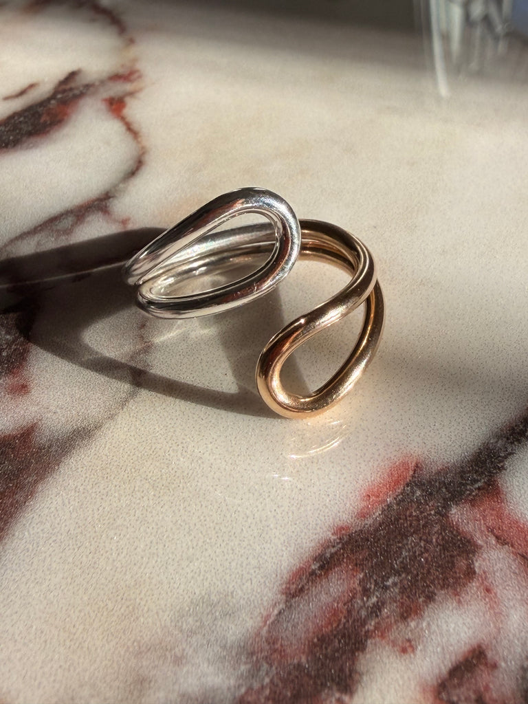 A best seller for over a year. Featuring both solid metal and mixed metal. This ring is modern, bold, feminine, and so chic!