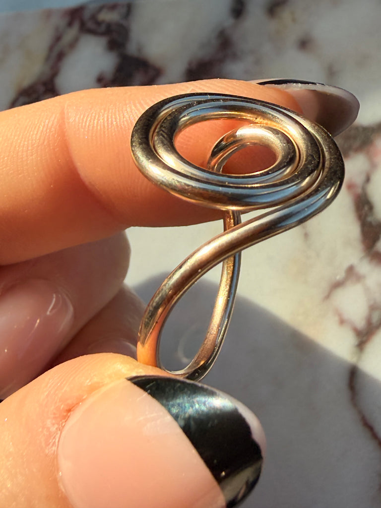 A stunning twist on "old money" aesthetic with new "cool girl" luxury. This ring features an infinity design making it like nothing you have ever seen before.